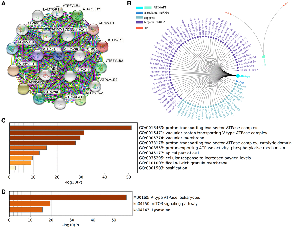 The lncRNAs, miRNAs and TFs associated with ATP6AP1 were assessed using GCBI (https://www.gcbi.com.cn), a resource based on multiple databases and published studies.