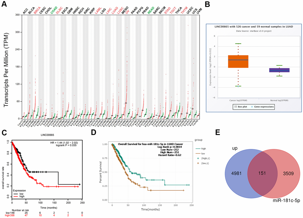 Bioinformatics analysis of LINC00665 expressions and clinical values in LUAD