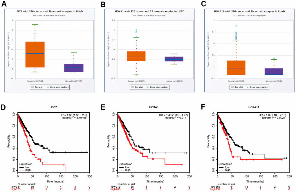 Bioinformatics analysis of the expressions of ZIC2, HOXA1 and HOXA11 in LUAD