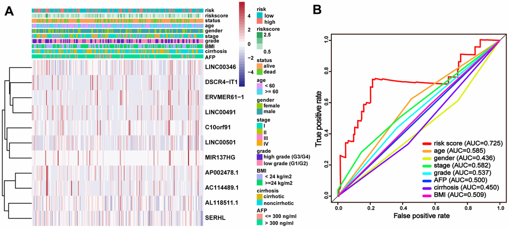 Cancer hallmark and immune signature analysis in our study revealed that the high-risk group of the lncRNA signature largely concentrated in DNA repair, PI3K/AKT/MTOR signaling pathway, glycolysis and immunologic characteristics in HCC. The PI3K/AKT/mTOR signaling pathway does pivotally work in regulating cellular apoptosis, survival, metabolism, and differentiation [15]. We inferred that the 11 lncRNAs might be crucial in regulating HCC through PI3K/AKT/mTOR signaling pathway. Thereafter, the immunologic signature analysis suggested that these lncRNAs had a possible link with immune regulation. Consistent with the previous immune signature analysis, our findings were expanded and confirmed the discovery that the lncRNA signature in HCC showed significant correlation with immune cell infiltration. This suggested that the signature might participate in immune regulation. Nevertheless, the function of immune cell infiltration in HCC still remains unknown. Our preliminary observations provided a perspective opinion to investigate this issue, and further studies were warranted in the future.