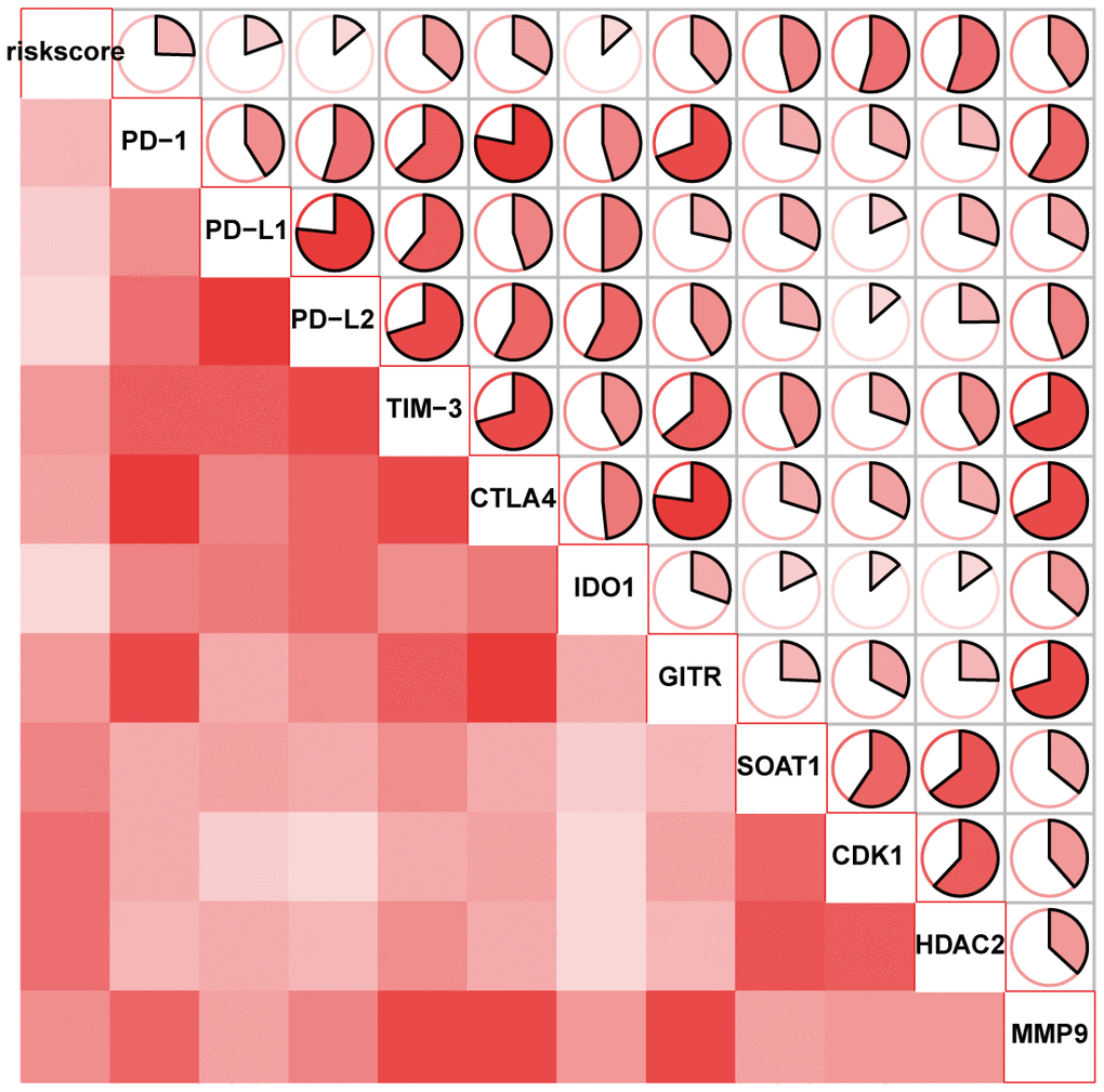 The ICB correlation analysis, including PD-1, CTLA4, TIM-3, PD-L1, PD-L2, IDO1, GITR, SOAT1, CDK1, HDAC2 and MMP9, was conducted with the signature. As shown in Figure 8, the lncRNA signature showed significantly positive correlation with all ICBs targeting molecules. This result suggested that the signature might contribute to the evaluation of response to ICB therapy in HCC.