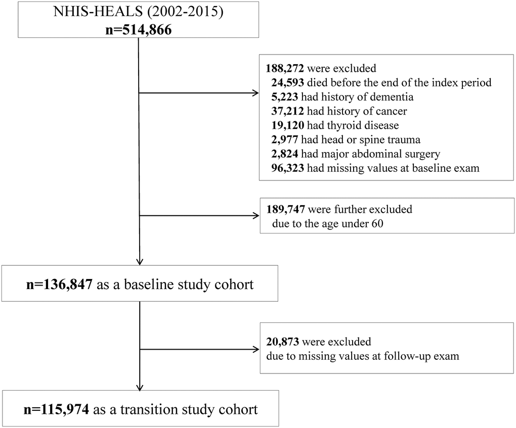 The institutional review board of Asan Medical Center approved this study (IRB No. 2020-0611). As this study analyzed the data from the NHIS-HEALS, which were fully anonymized and de-identified, informed consent from each participant was not obtained. This study was approved by the NHIS inquiry commission.
