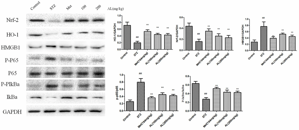 In summary, AL can improve diabetes-induced cognitive dysfunction, and its mechanism is related to the regulation of hippocampal Nrf-2/HO-1/ HMGB1/NF-κB signaling pathway, and its in-depth mechanism needs further study.