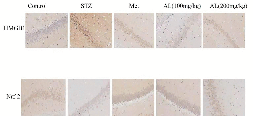 Effects of AL on Nrf-2 and HMGB1by immunohistochemistry analysis
