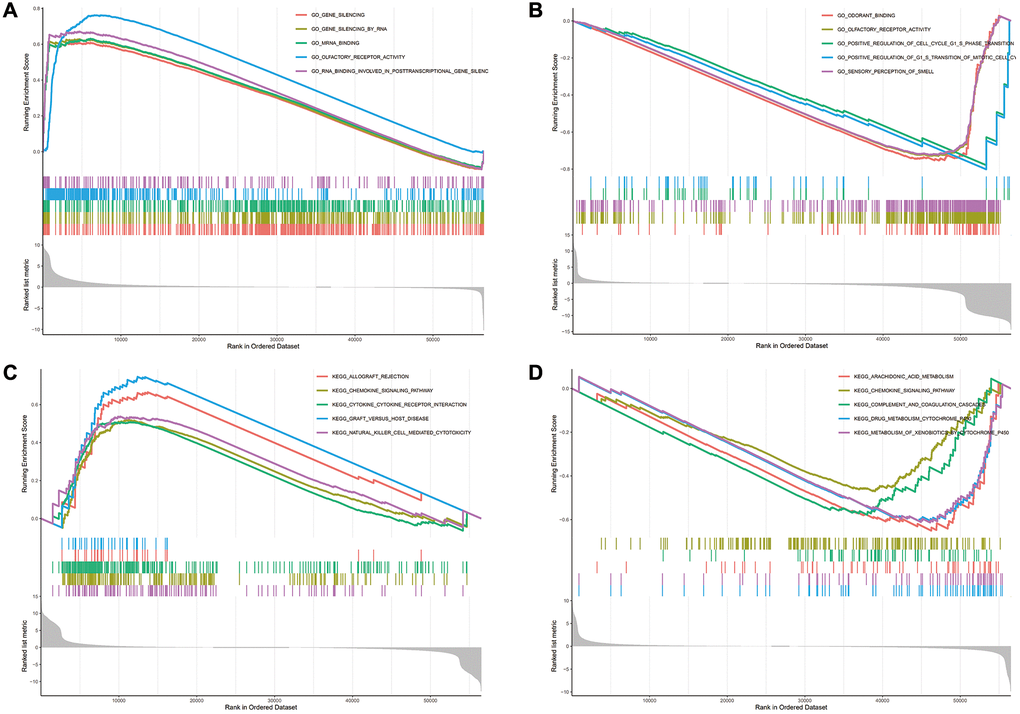 Additional gene set enhancement investigation was similarly achieved utilizing GSEA (Gene Set Enrichment Analysis) software v2.2.1 (Gene Set Enrichment Analysis, http://www.broadinstitute.org/gsea/index.jsp). When the number of random sample arrangements was 100 and the significance threshold was P < 0.05, R software (http://r-project.org/) and Bioconductor (http://bioconductor.org/) were applied to visualize our results.