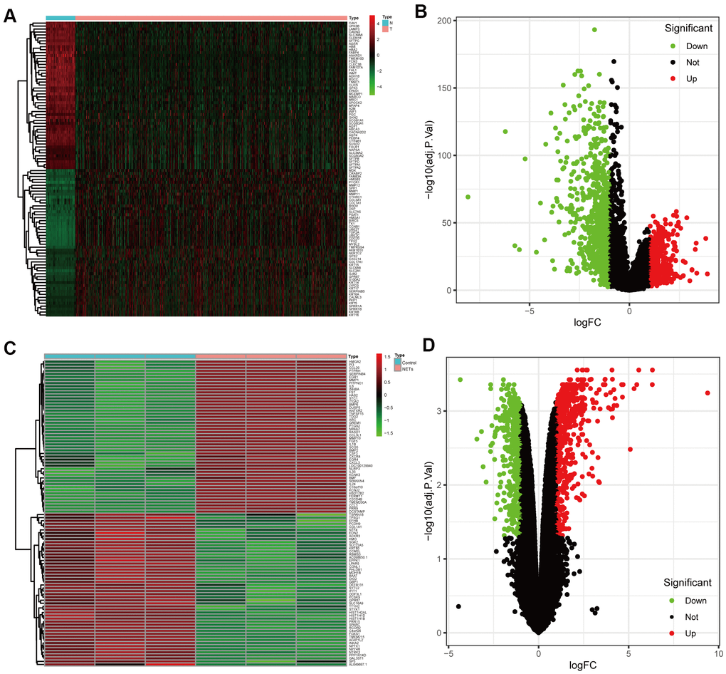 The NETs-related genes were obtained from the transcriptome RNA microarray data of A549 cells with or without NETs treated 12h.