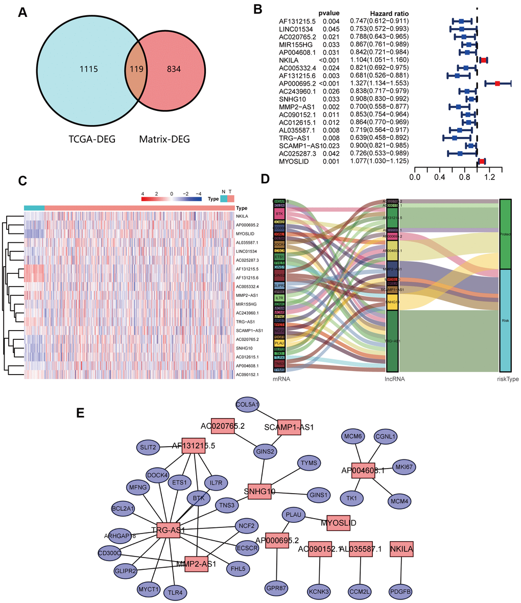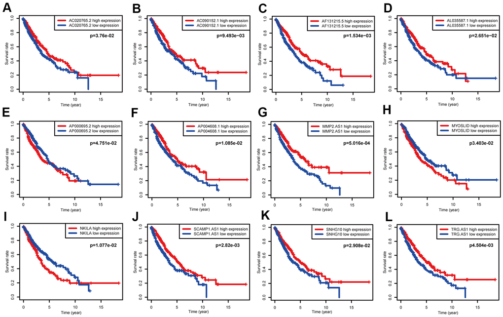 Non-small cell lung cancer, a primary thoracic malignancy worldwide, is the leading cause of cancerous death, thus, it is urgent to find reliable molecular biomarkers that can predict the prognosis of NSCLC to improve the survival rate [2, 17]. NETs have been reported to play complicated and momentous roles in NSCLC progression [18]. NETs can regulate cell activities and metabolism by inducing tumor microenvironment heterogeneity and chiefly promote tumor progression by setting the premetastatic niche, such as capturing circulating tumor cells (CTCs) and inducing epithelial-mesenchymal transition (EMT) [19]. LncRNAs, as a significant kind of noncoding RNAs, have an intimate connection with the genomes that impacts the transformed phenotype of cancer cells in terms of cell cycle variation, survival, immune response, and other processes [20]. Moreover, because the expression levels of lncRNAs were found to be different in tumors, they became one of the direct reasons for the normal cells to convert into tumor cells [21, 22], and play vital functions in cancer diagnosis and prognosis as new biomarkers [14, 23]. However, the prognostic significance of related lncRNAs in NSCLC accepting NETs has not been covered. Here, we established a 12 NETs-related lncRNA signature model to predict the prognosis of NSCLC patients.