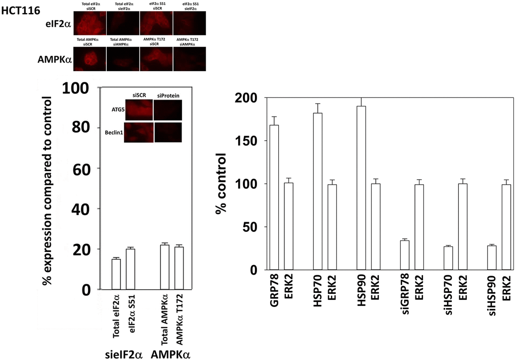 HCT116 ATG16L1 T300 cells were purchased by Dr. David L. Boone (University of Notre Dame, South Bend, OH) and were used to generate isogenic HCT116 ATG16L1 A300 knock in cells [49]. African Green monkey kidney (Vero) cells were a kind gift of Dr. Jin Kim (University of South Alabama, Mobile, AL). GBM6 cells were kindly provided by the Mayo Clinic cell bank (Rochester, MN). AR12 and MMF were purchased from Selleckchem (Houston, TX). Neratinib was supplied by Puma Biotechnology Inc. (Los Angeles, CA). Fingolimod (FTY720) was purchased from Sigma-Aldrich (St. Louis MO). Plasmids to express LC3-GFP-RFP, Tau-GFP, Tau 301L-GFP, APP-FLAG, APP715-FLAG, APP692-FLAG, SOD1 G93A, TDP-43 and Huntingtin CAG145 were purchased from Addgene (Watertown, MA). The plasmid to express the SARS-CoV-2 spike protein was from Sino Biological (Wayne, PA). Trypsin-EDTA, RPMI, penicillin-streptomycin were purchased from GIBCOBRL (GIBCOBRL Life Technologies, Grand Island, NY). Other reagents and performance of experimental procedures were as described [26, 31, 36, 37, 43, 46, 48, 50–52]. Antibodies used: Beclin1 (3495), eIF2α (5324), AMPKα (2532), ATG5 (12994), ATG13 (13468) all from Cell Signaling Technology (Danvers, MA); P-ATG13 S318 (19127) from Novus Biologicals. Specific multiple independent siRNAs to knock down the expression of AMPKα1, Beclin1, ATG5 and eIFα, and scramble control, were purchased from Qiagen (Hilden, Germany). Additional antibodies used in this study: HSP90 (E289) (Cell Signaling); HSP90 (#2928) (Abcam); HSP90 (ab195575) Abcam; HSP90 3G3 (13495) (Abcam); GRP78 (50b12) (31772) (Cell Signaling); GRP78 (ab191023) Abcam; GRP78 (ab103336) Abcam; GRP78 (N-20) (sc-1050) Santa Cruz; HSP27 (G31) (2402P) Cell Signaling); HSP27 [EP1724Y] (ab62339) Abcam; HSP27 (H-77) (sc-9012) Santa Cruz; HSP27 (LS-C31836). Multiple control studies have been previously presented showing on-target specificity of our siRNAs, primary antibodies, and our phospho-specific antibodies to detect both total protein levels and phosphorylated levels of proteins (Figure 1) [51, 52].