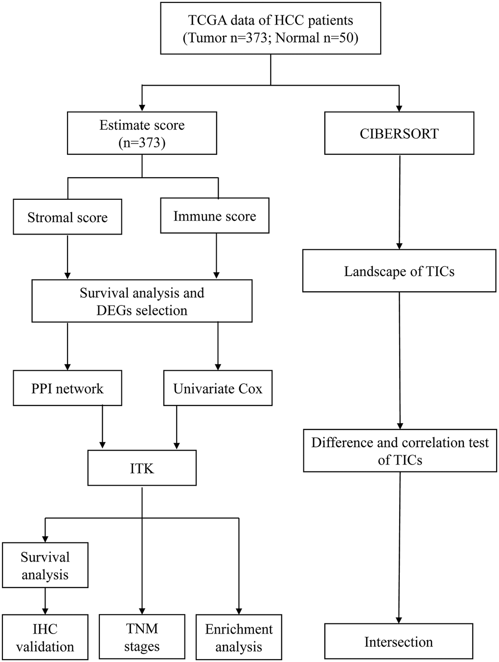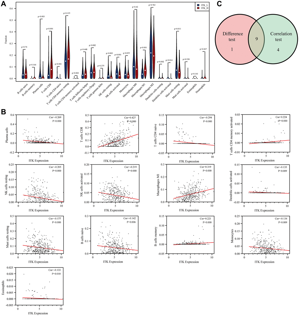 To look deeper into the TME modulation of HCC and discover predictive biomarkers, as well as potential therapeutic targets, transcriptome-sequencing, and subsequent functional genomics analysis, are good available methods. In the current study, the ESTIMATE and CIBERSORT algorithms were used to determine the immune signatures of TICs from patients with HCC from The Cancer Genome Atlas (TCGA) database and identified interleukin-2 inducible T-cell kinase (ITK) as a predictive biomarker.