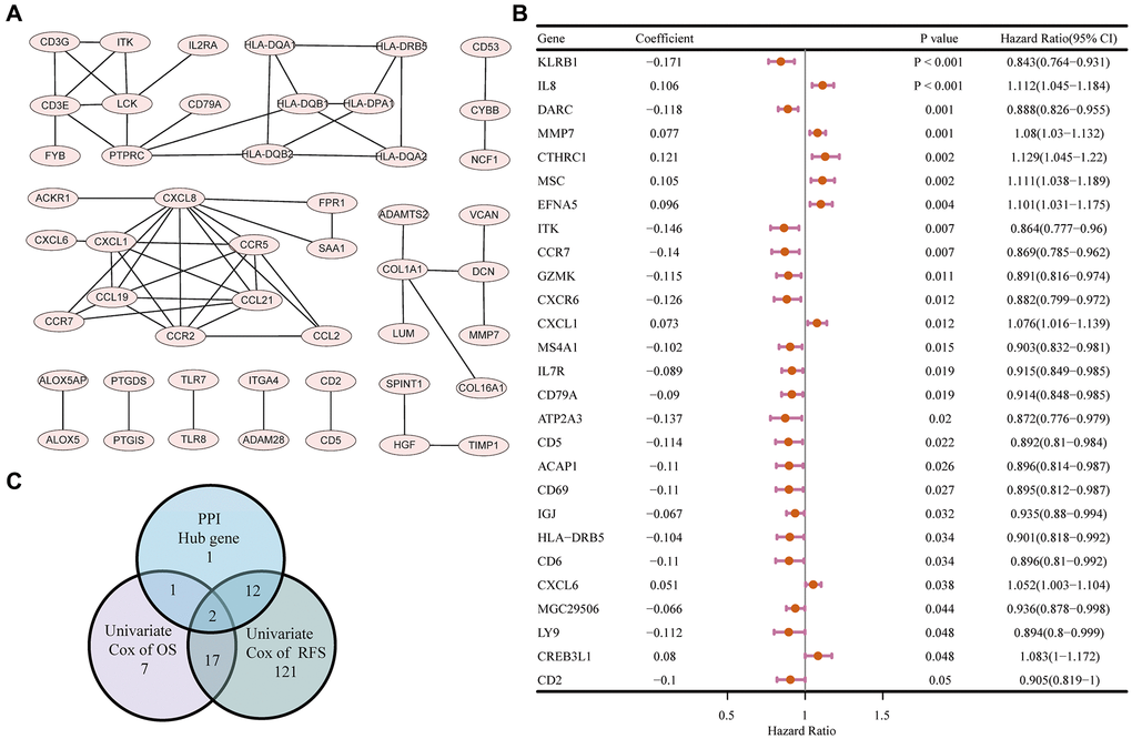 A protein-protein interaction (PPI) network and univariate COX regression identified two significant factors