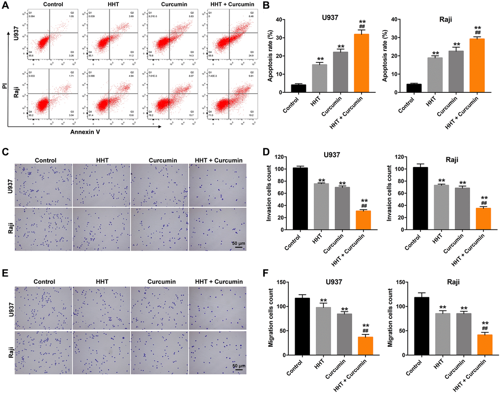 Combination of curcumin and HHT induced apoptosis and suppressed migratory and invasive ability in lymphoma cells