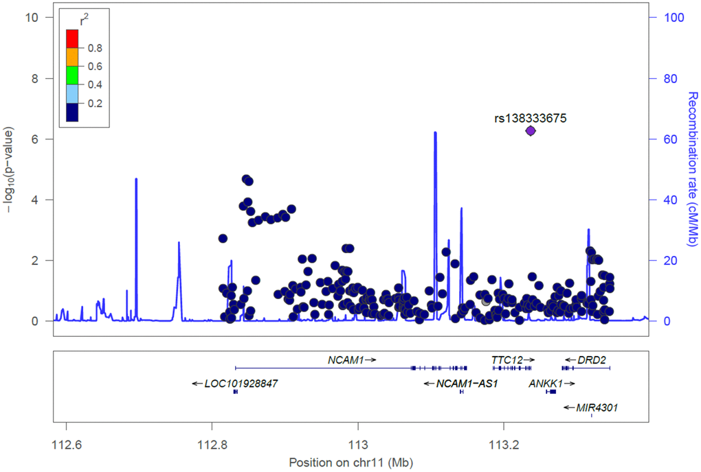- 33. Gelernter J, Yu Y, Weiss R, Brady K, Panhuysen C, Yang BZ, Kranzler HR, Farrer L. Haplotype spanning TTC12 and ANKK1, flanked by the DRD2 and NCAM1 loci, is strongly associated to nicotine dependence in two distinct American populations. Hum Mol Genet. 2006; 15:3498–507. https://doi.org/10.1093/hmg/ddl426 [PubMed]
