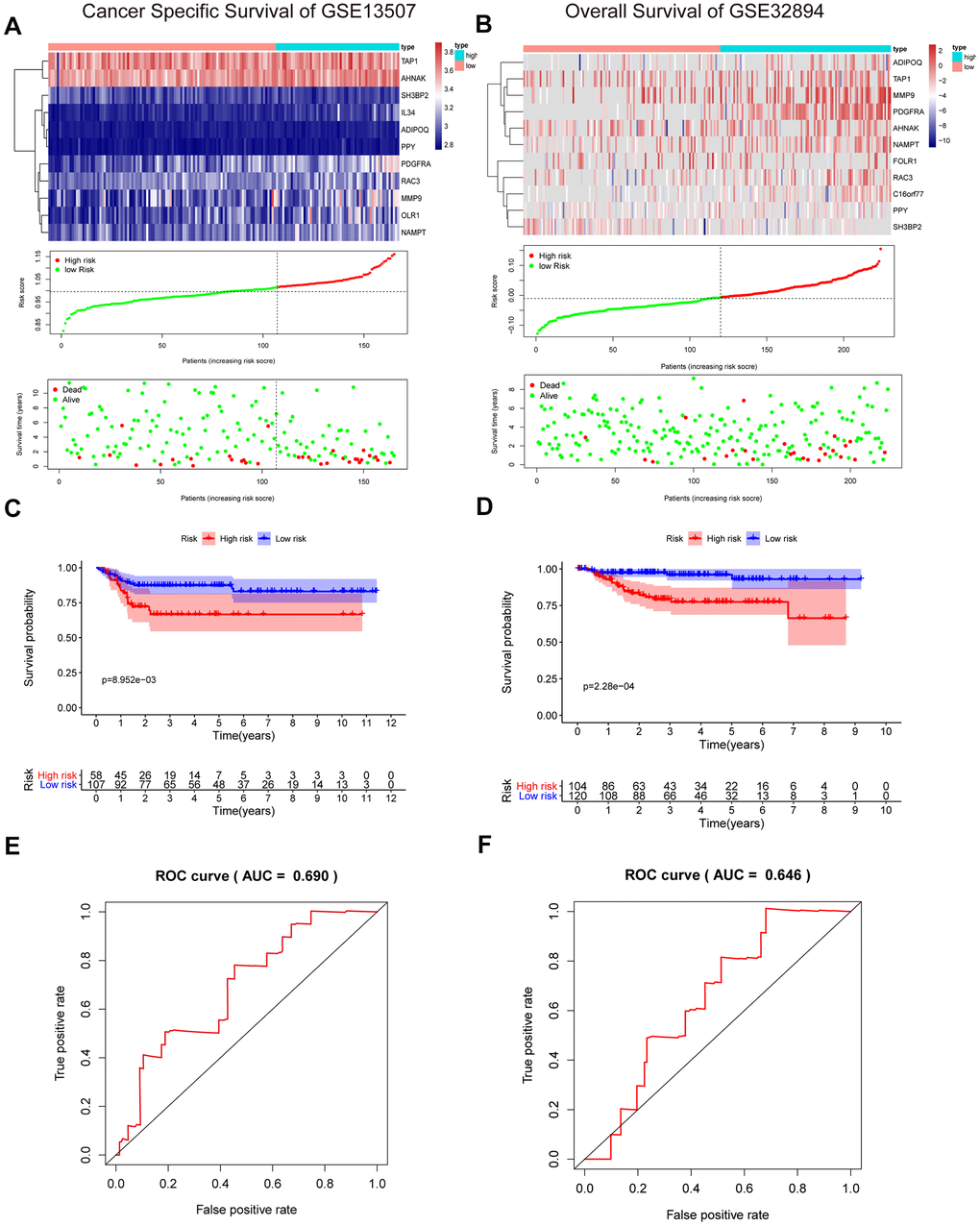 External validation of the proposed signature in the GSE13507 and GSE32894 cohorts