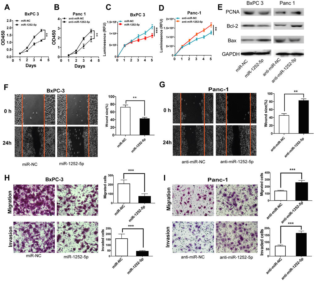 MiR-1252-5p inhibited proliferation, migration, and invasion in PAC cells