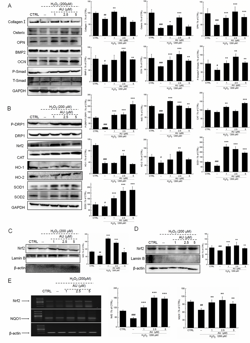 This article has been corrected: The authors replaced the HO-2 panel of the Western blot in Figure 4B, which was accidently mislabeled and duplicated with the HO-2 panel from Figure 2B. Figure 5 was replaced because the original Figure 5 was misprinted with an additional panel at the bottom, which was a partial copy of the above AU 45 mg/kg panel. In addition, the authors corrected Supplementary Figure 3, where the Nrf2 band was misplaced during figure preparation. All replacements were done using representative images from the original sets of experiments. These alterations do not affect the results or conclusions of this work.