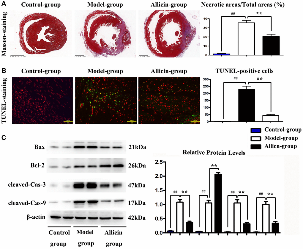 Effect of allicin on myocardial infarct size and TUNEL-positive cells