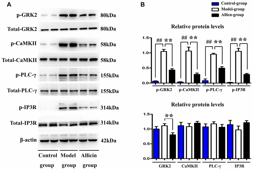 Allicin repressed the expression of p-GRK2, p-CaMKII, p-PLC-γ, and p-IP3R during MI/R injury