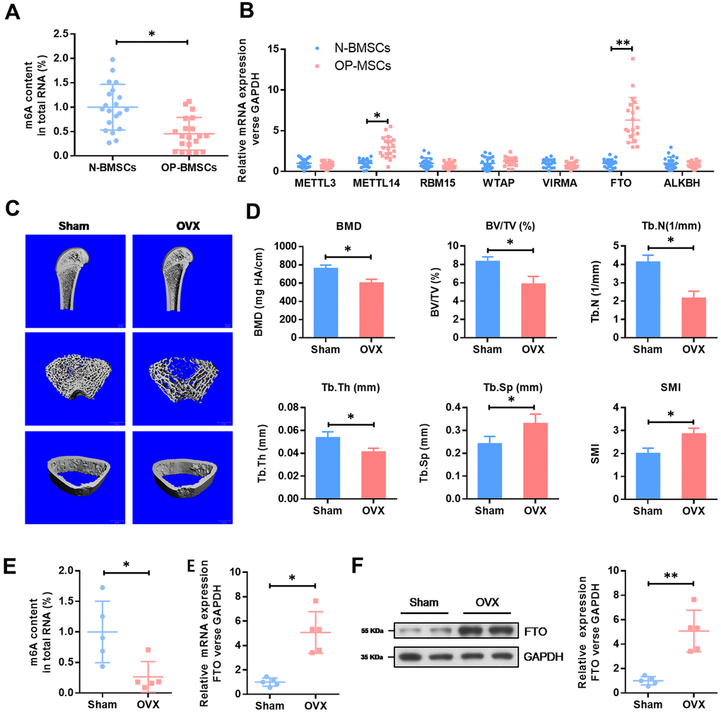 The level of methyltransferase FTO is elevated in BMSCs from OP patients and OVX mouse
