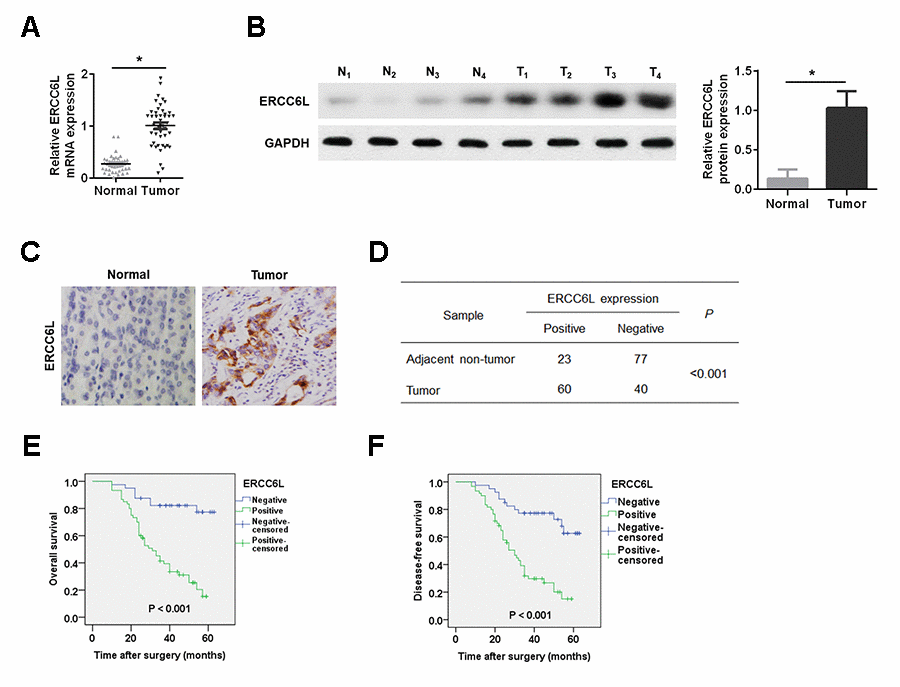 Human ERCC6L is recognized as an embryonic development-related protein [6]. Recently, ERCC6L also appears to play an important role in cancer progression. As reported, ERCC6L upregulation was demonstrated to be correlated with tumor progression and poor prognosis in hepatocellular carcinoma (HCC) [7]. Additionally, ERCC6L was found to promote colorectal cancer (CRC) cell growth and invasion [8]. However, the pathophysiologic role and the mechanism of ERCC6L-induced GC cell growth and metastasis are still unclear.