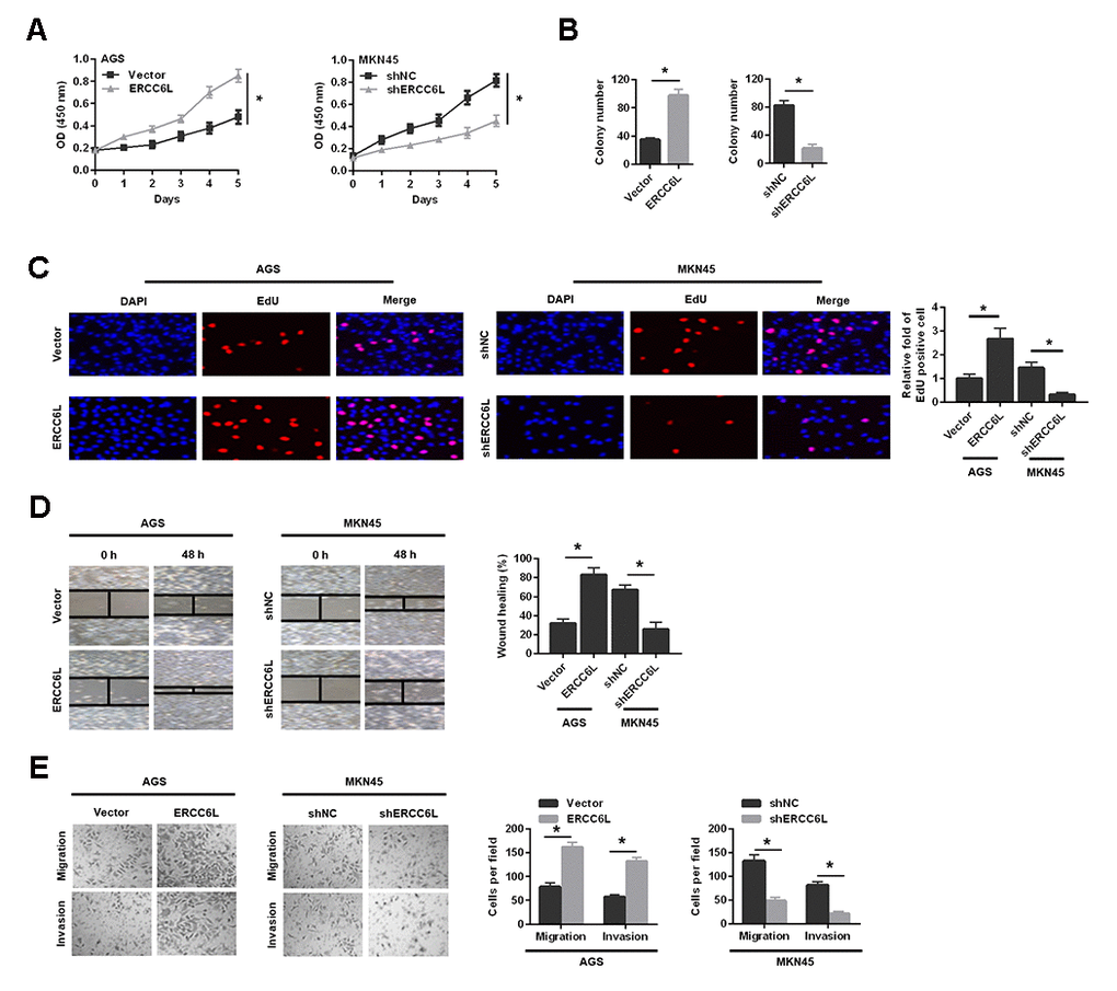 ERCC6L promotes proliferation, migration and invasion of GC cells in vitro