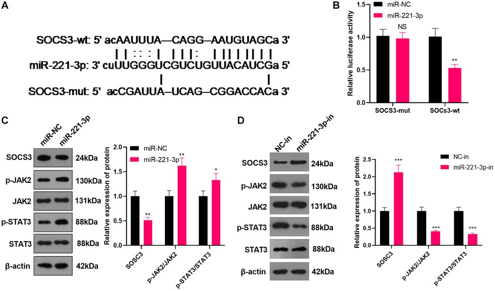 Overexpressing miR-221-3p curbed SOCS3 and activated JAK2/STAT3
