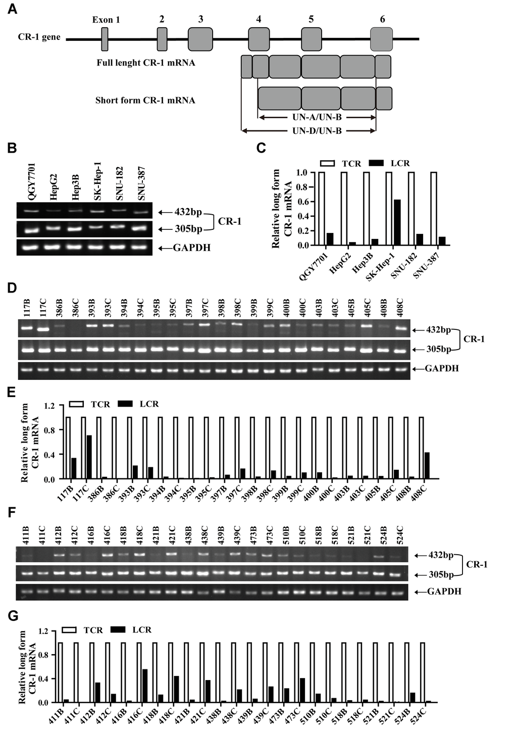 Truncated CR-1 mRNA is predominantly expressed in HCC cell lines and tissues