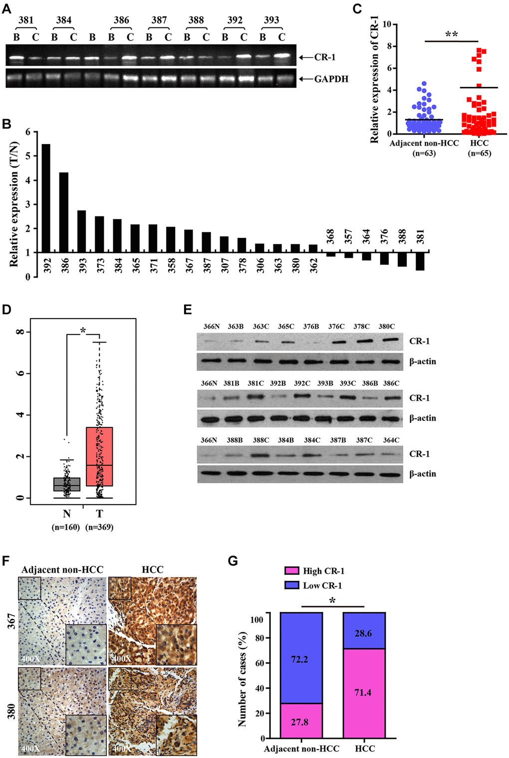 CR-1 is significantly upregulated in HCC tissues