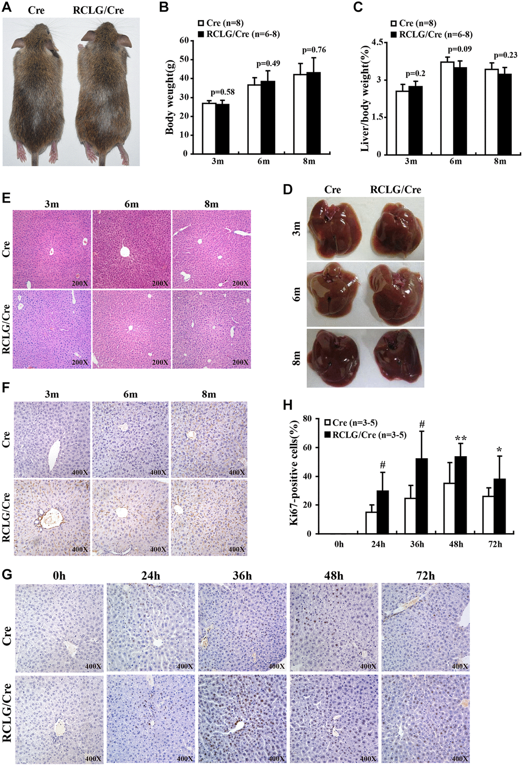 In vivo hepatocyte proliferation is increased in RCLG/Alb-Cre mice after 2/3 PHx