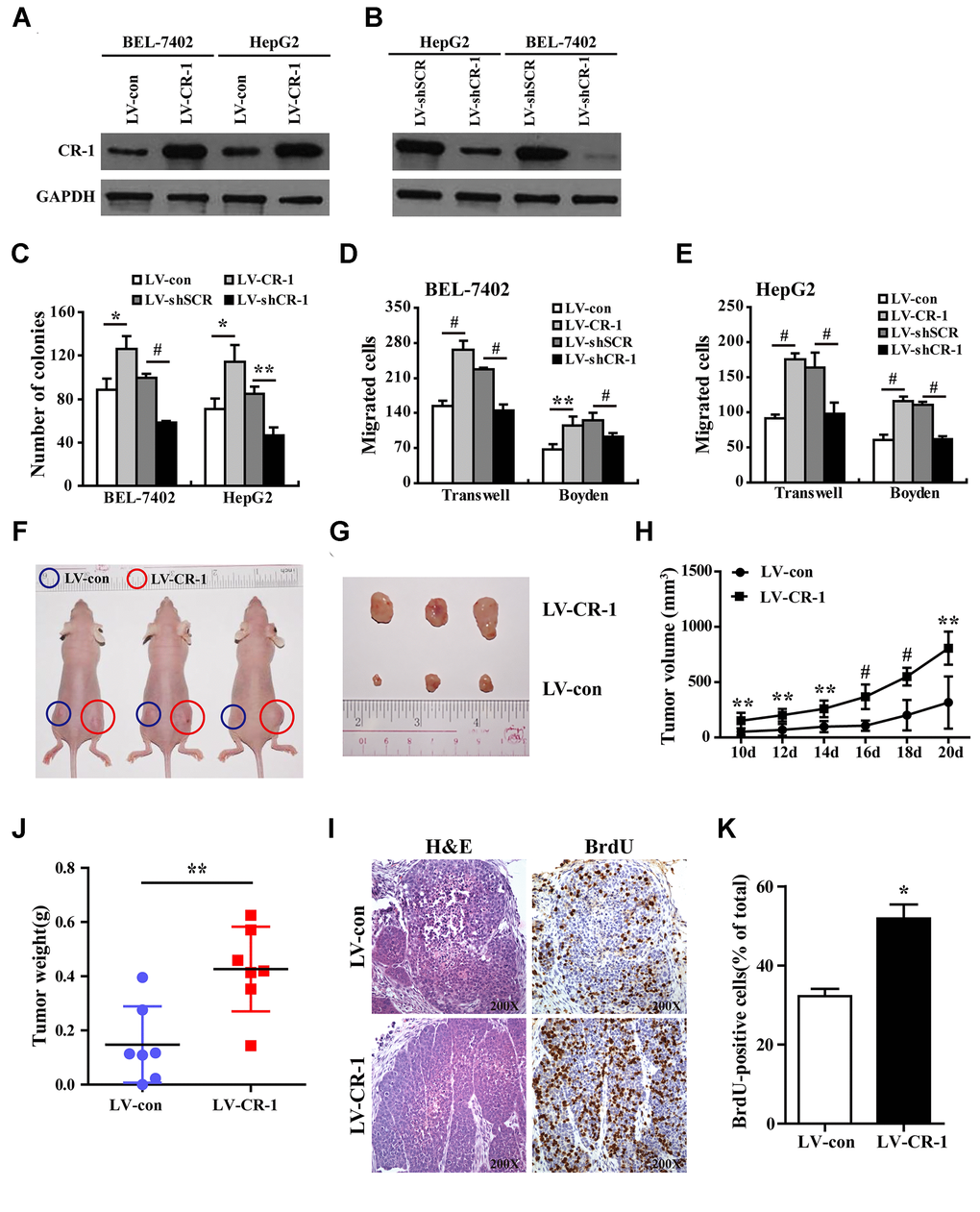 CR-1 overexpression promotes in vivo growth of HCC cell-derived xenograft tumors