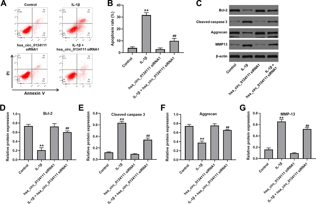 Hsa_circ_0134111 knockdown attenuates IL-1β-induced apoptosis, aggrecan downregulation, and MMP13 expression in chondrocytes