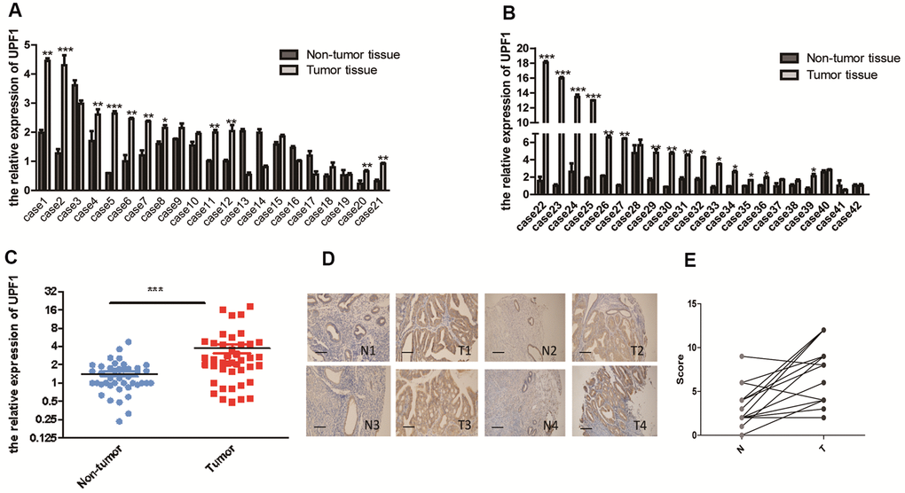 UPF1 expression was significantly higher in EEC tumor tissues than in matched normal tissues