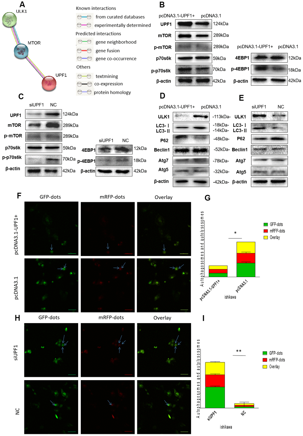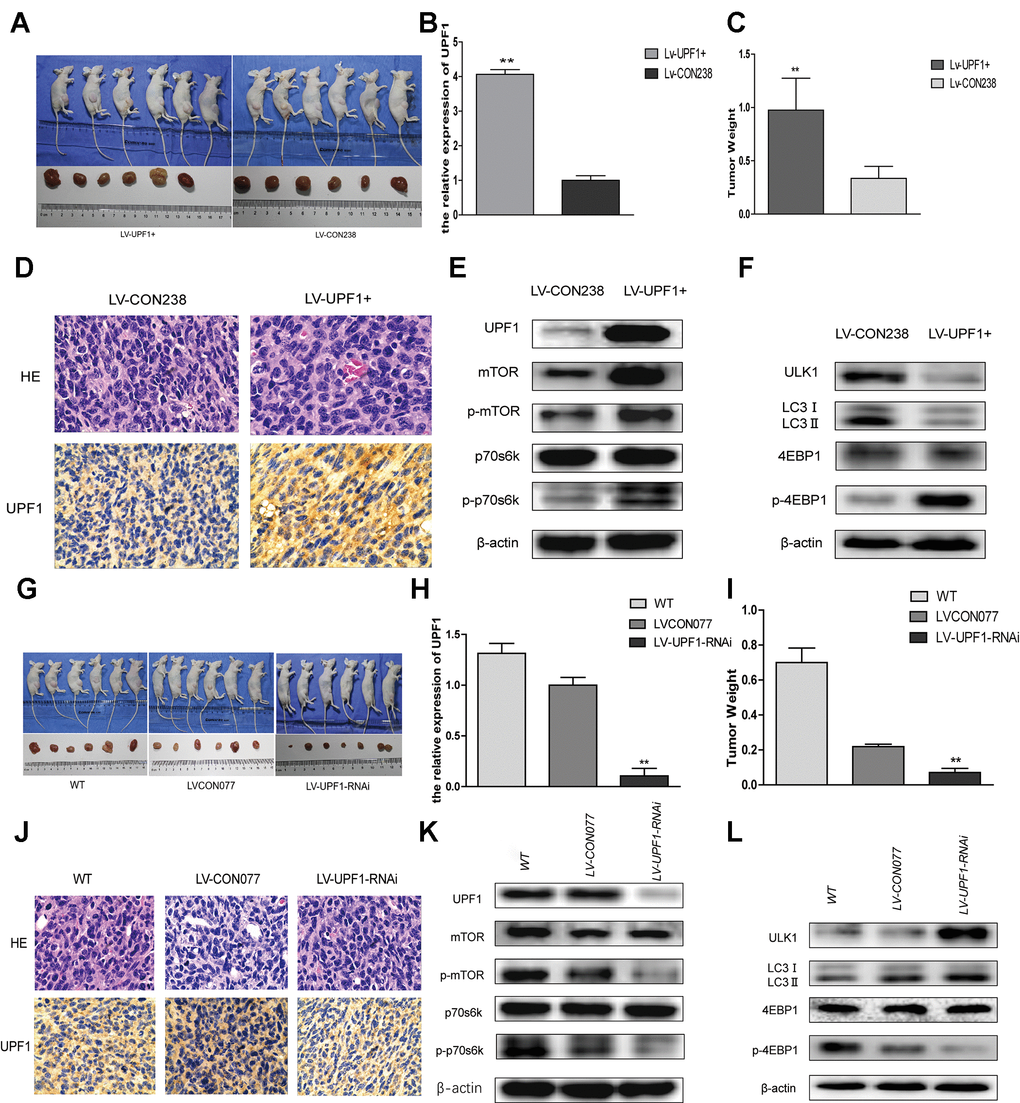 Our studies have shown that UPF1 is associated with autophagy in EEC cell lines in the previous experiments. Furtherly, we found the relationship between them in vivo (Figure 6E, 6F, 6K, 6L). We found that UPF1 could affect mTOR signaling pathway and autophagy.
