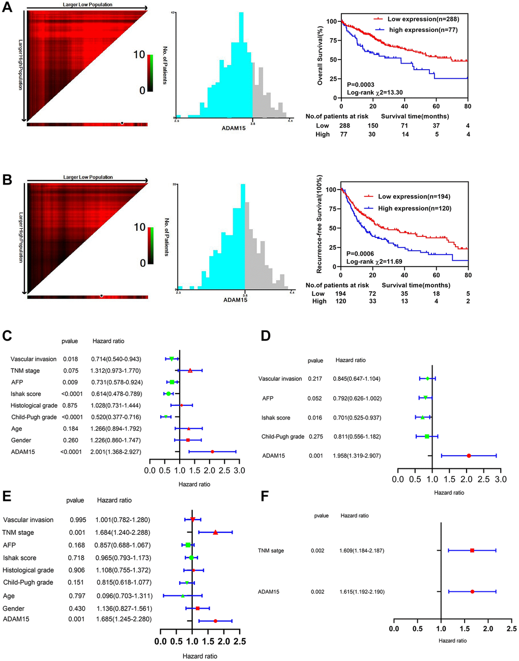 Overexpression of ADAM15 independently predicted poor OS and RFS in HCC