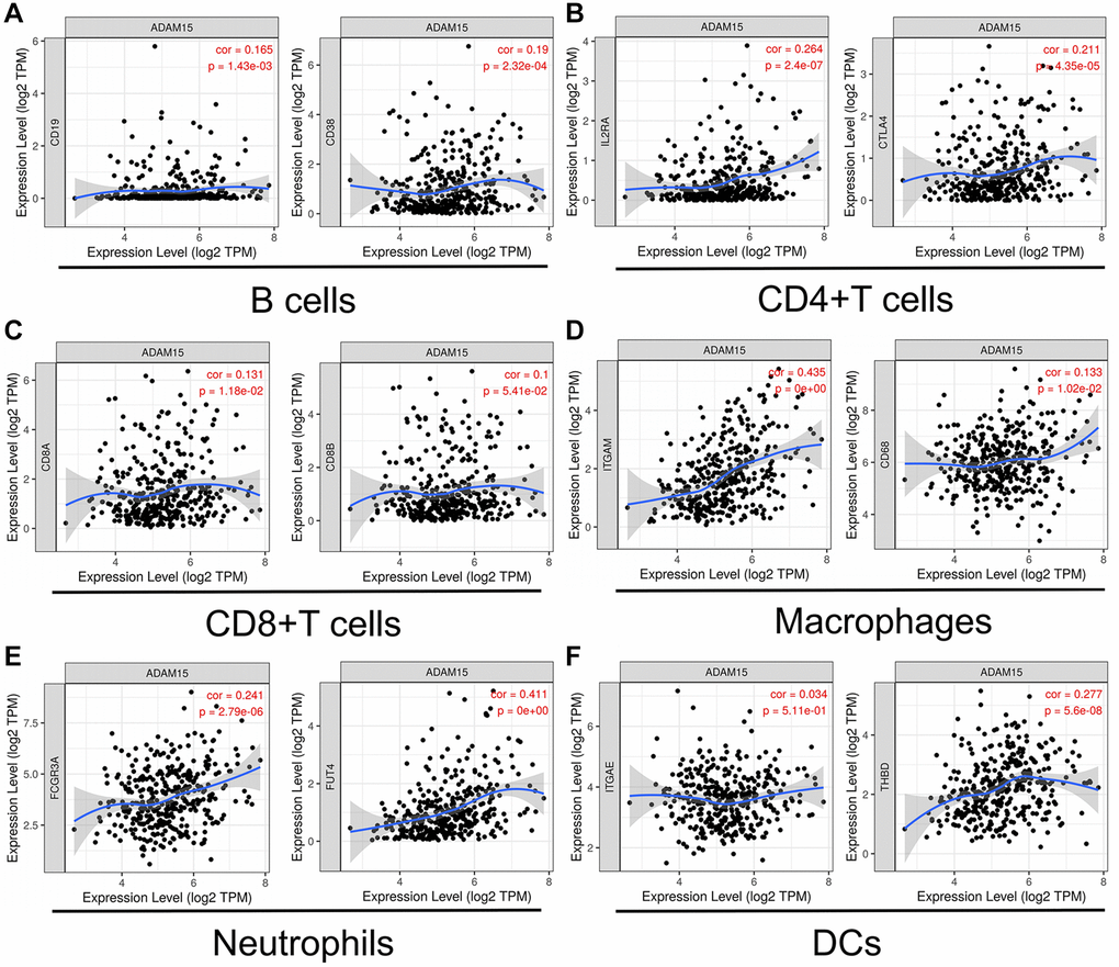 Table 2. Correlation between ADAM15 expression and immune cell surface markers.
