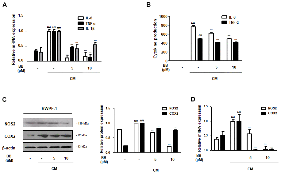 Treatment of BB inhibited inflammatory responses in CM-treated RWPE-1 cells