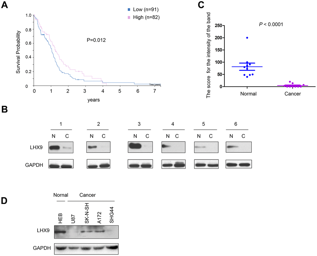 Downregulation of LHX9 is associated with poor survival of glioma patients