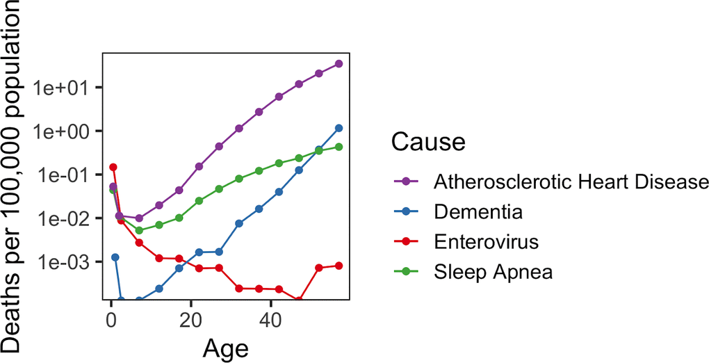 - 7. Kinzina ED, Podolskiy DI, Dmitriev SE, Gladyshev VN. Patterns of Aging Biomarkers, Mortality, and Damaging Mutations Illuminate the Beginning of Aging and Causes of Early-Life Mortality. Cell Rep. 2019; 29:4276–84.e3. https://doi.org/10.1016/j.celrep.2019.11.091 [PubMed]