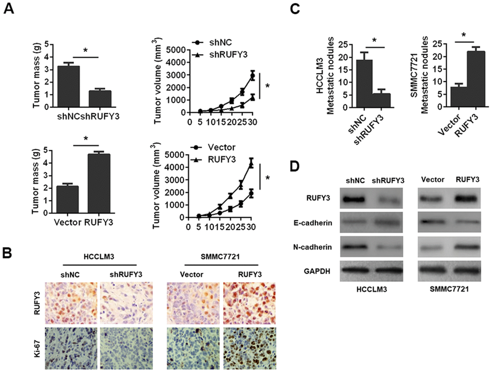 RUFY3 promotes the growth and metastasis of HCC cell in vivo