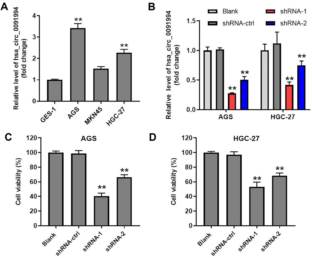 Hsa_circ_0091994 knockdown repressed cell viability of AGS and HGC-27