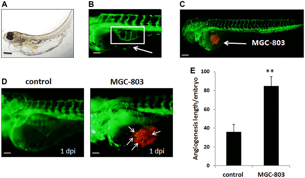 Cell line MGC-803 promoted angiogenesis in zebrafish embryos