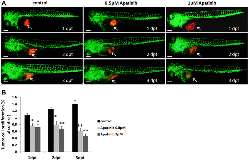 Inhibition effect of apatinib on tumor cell proliferation in the zebrafish xenograft model