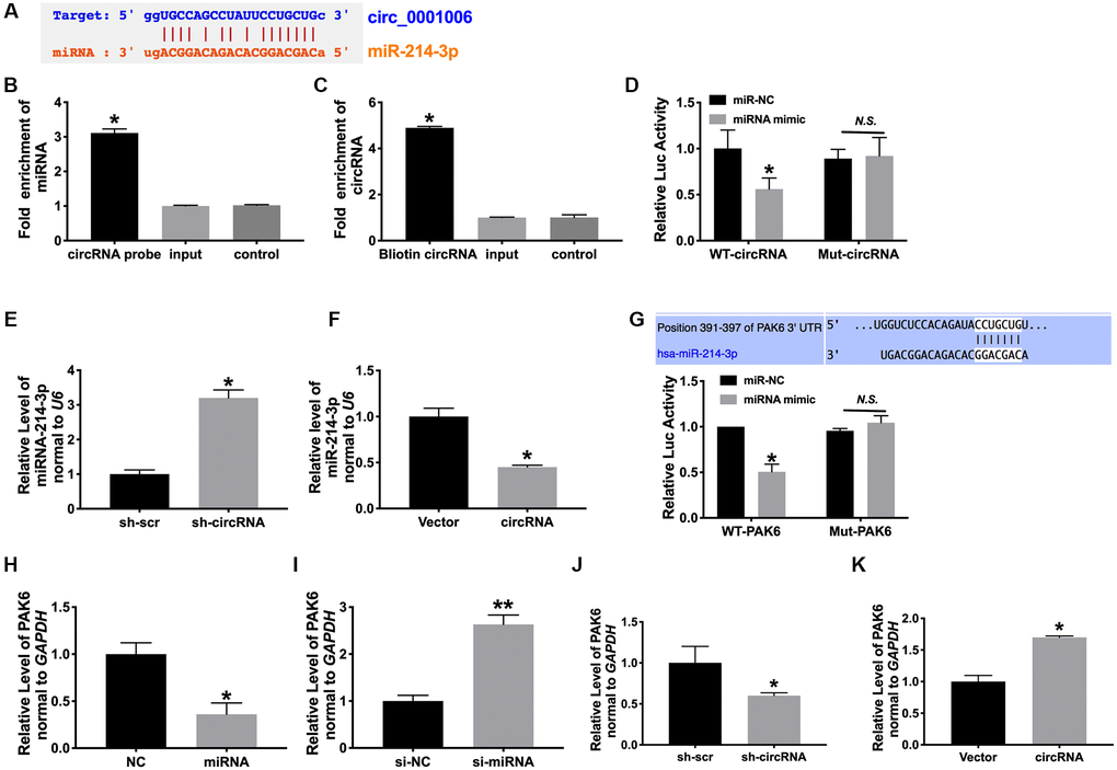 MiR-214-3p/PAK6 may be downstream of circ_0001006