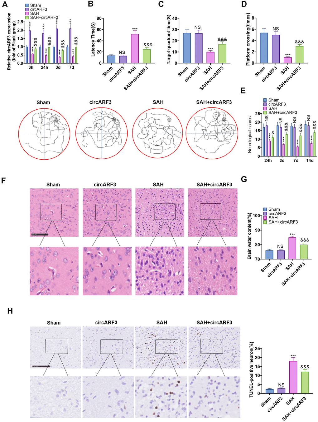Overexpressing circARF3 attenuated nerve function injury and neuronal apoptosis in SAH rats