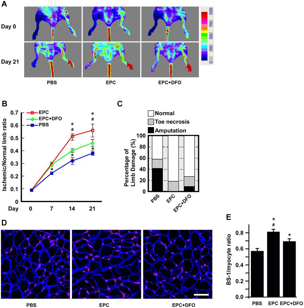 The angiogenic activity of DFO-pretreated EPCs is compromised in hind-limb ischemic animals