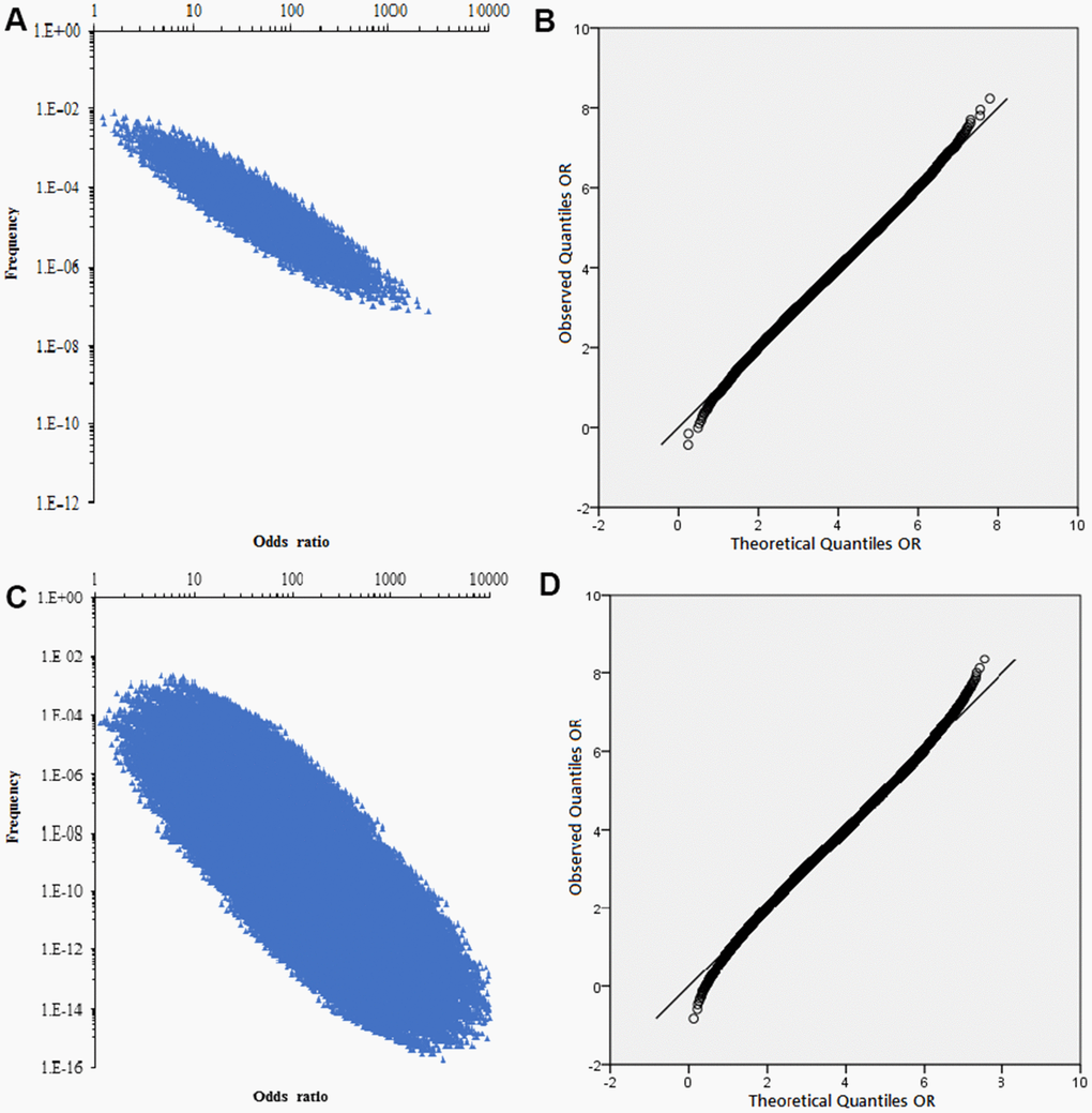 Meta-analysis used a fixed effect model (P-value of heterogeneity (Pheterogeneity) ≥ 0.10 or I2 ≤ 50%) or a random effects model (Pheterogeneity < 0.1 and I2 > 50%) based on the inter-study heterogeneity, and we obtained the distribution of observed and expected values by quantile-quantile (Q-Q) plots. The trend distributions were performed with Visual Studio 2013 (Microsoft Corporation, Redmond, USA) to explore by possible combinations and frequencies of genetic variants and potential risk factors.
