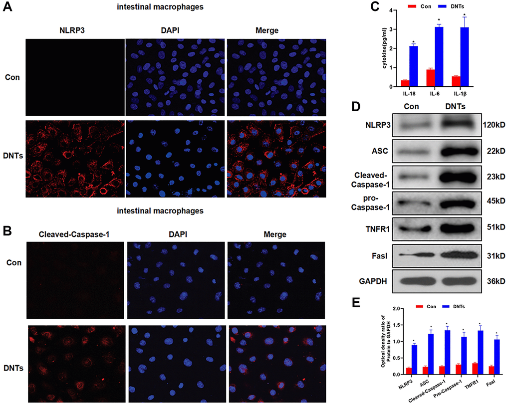 DNTs promoted NLRP3 inflammasome activation and inflammatory response in intestinal macrophages