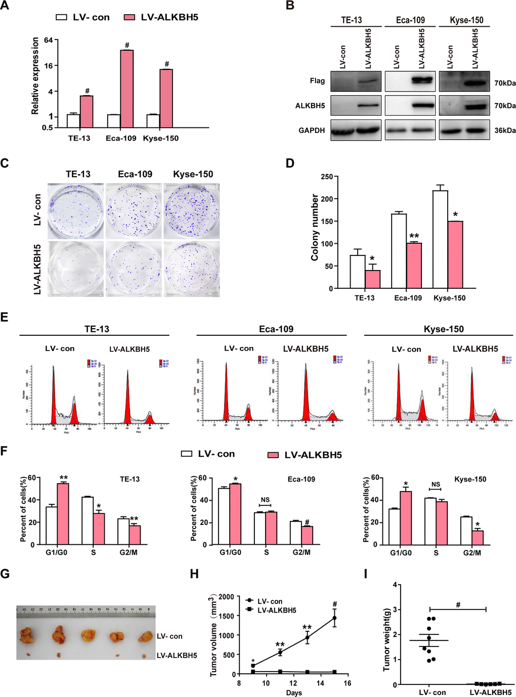 Ectopic expression of ALKBH5 suppresses in vivo tumorigenicity of ESCC cells