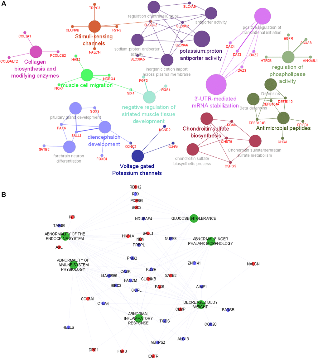 - 39. Bindea G, Mlecnik B, Hackl H, Charoentong P, Tosolini M, Kirilovsky A, Fridman WH, Pagès F, Trajanoski Z, Galon J. ClueGO: a Cytoscape plug-in to decipher functionally grouped gene ontology and pathway annotation networks. Bioinformatics. 2009; 25:1091–93. https://doi.org/10.1093/bioinformatics/btp101 [PubMed]