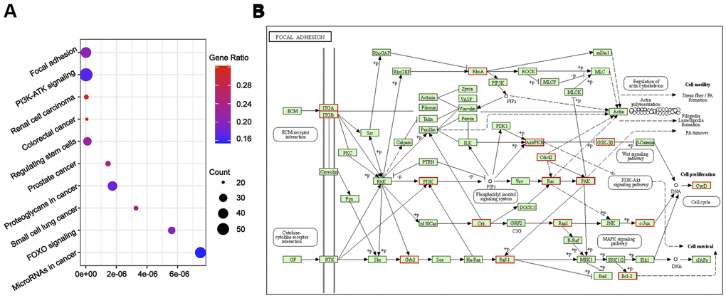 Compared with other bioinformatics methods, WGCNA focuses on the association between clinical traits and co-expression modules leading to higher biological significance and reliability [24]. To explore the correlations between small RNAs expression and clinical characteristics of EAC, we performed WGCNA analysis and screened for hub small RNAs. Further target gene prediction and gene ontology analysis demonstrated that the most relevant signal pathways for the Silva pattern A of EAC were PI3K-Akt-mTOR signaling pathways and focal adhesion, which is consistent with the clinicopathological characteristics of the Silva pattern A. It is well known that PI3K-Akt-mTOR signaling pathway regulates fundamental cellular functions such as transcription, proliferation and metabolism, component genes of which are commonly activated in cancer [25]. Additionally, the dynamic status of focal adhesion was closely associated with cell migration. Silva pattern A EAC is featured by an obvious boundary from the surrounding stroma without invasiveness, which might be attributed to focal adhesion. In contrast, hub small RNAs related with Gastric subtype of EAC were enriched in cadherin binding involved in cell-cell adhesion. Dysfunction of cadherin adhesion is closely related to the epithelial transition in cancer cells and tumor invasiveness [26], in accordance with the great malignancy and strong invasiveness of the Gastric subtype. Moreover, we discovered that the signal pathways related with substantial LVSI was ubiquitin mediated proteolysis pathway. To further verify this correlation, we extracted DEGs from patients with positive and negative LVSI in the Cancer Genome Atlas (TCGA) cervical cancer cohort and found that the DEGs were also enriched in proteolysis pathway. These results confirmed a close association between proteolysis signaling pathway and the clinical phenotype of LVSI, providing a research direction for subsequent functional experiments.