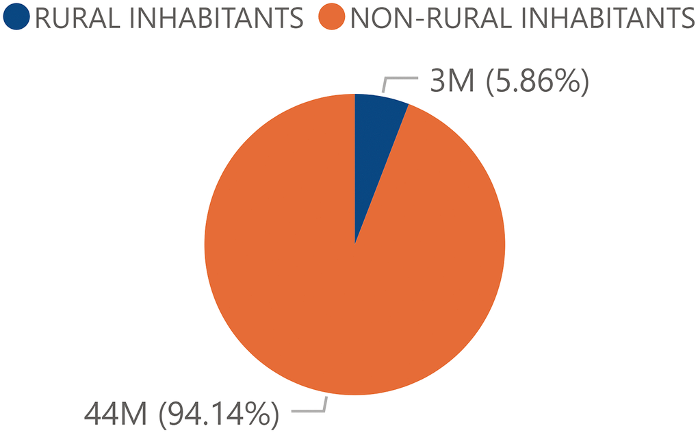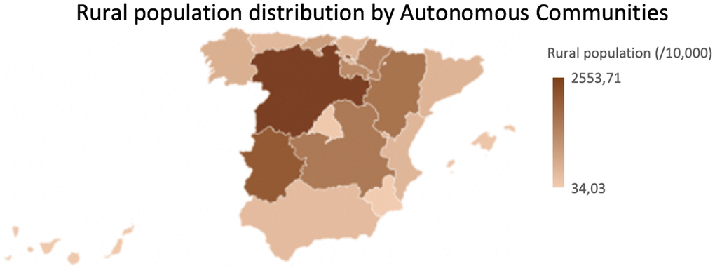 All municipalities with less than 2,000 inhabitants were considered as rural areas regarding the information provided by the National Institute of Statistics (INE) and the definition of rurality, which from the sociocultural point of view moves away from the rural reality, which could imply an interpretation bias.